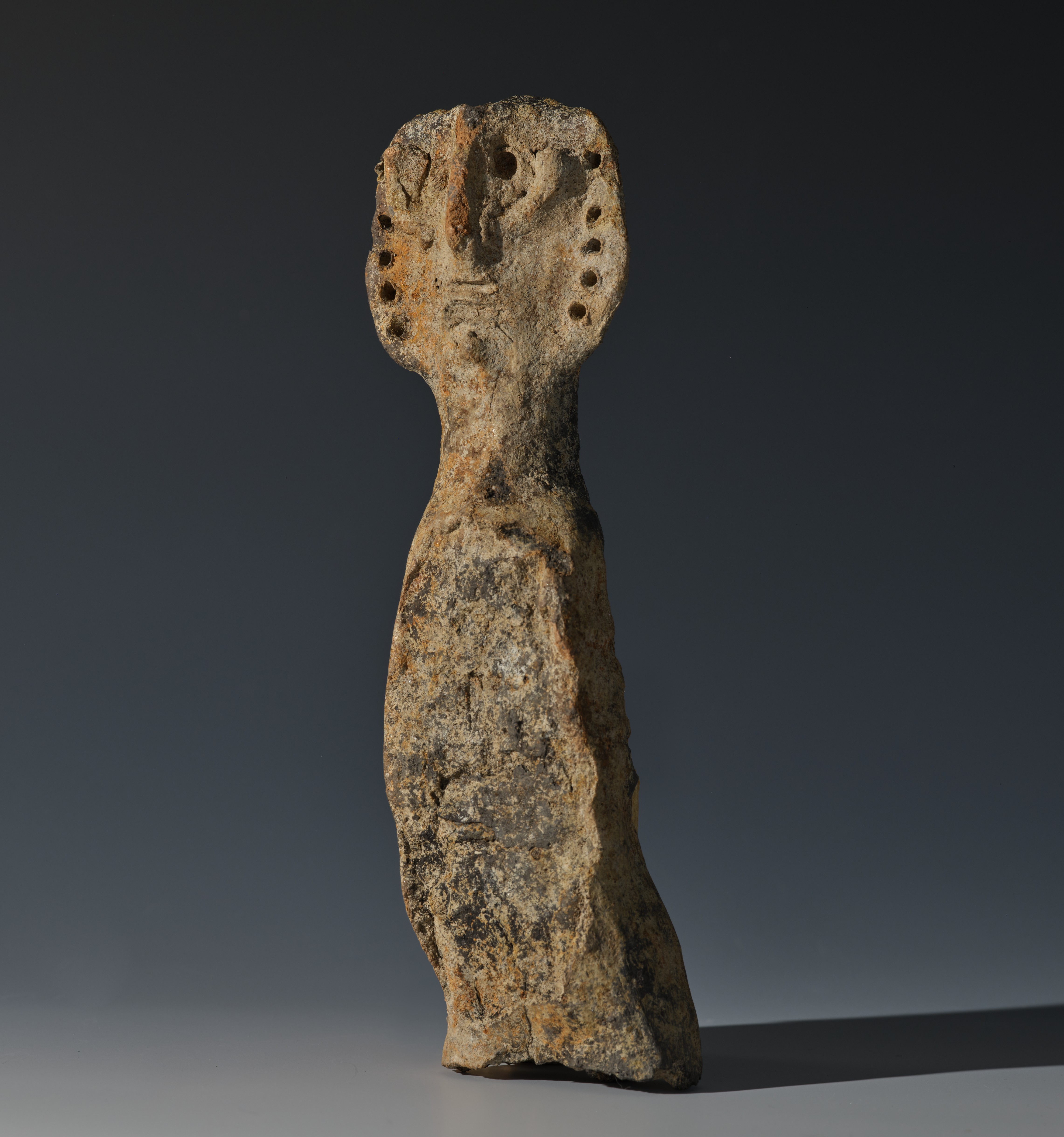 Die abstrakte, archaisch wirkende Figurine einer Frau fand sich in einem verlandeten Wasserloch, in dem sie gemeinsam mit einem Keramikstempel, Gefäßscherben und Knochengerät niedergelegt (oder versenkt?) wurde. Den Kopf der Kultfigur umgibt eine scheibenförmige Zier, in die ringförmig um das Gesicht vielleicht organischer Schmuck, wie Federn, Fellhaare oder Holznadeln eingesteckt war. Prunkvolle Frisuren oder Hauben mit Schmucknadeln oder Kugeln aus Bronze, Gold oder Koralle waren Teil der hallstattzeitlichen Frauentracht. Sie umrahmten Kopf und Gesicht wie ein Strahlenkranz und umgaben die Person – ähnlich wie der Heiligenschein der christlichen Muttergottes – mit einer sakralen Aura.