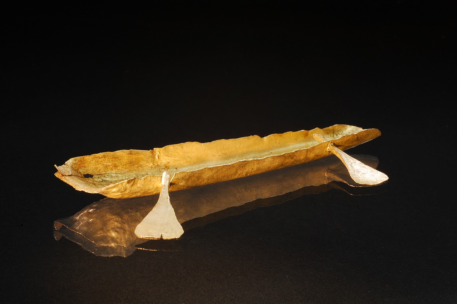 Das Schiff war zwar mit reichen Schätzen beladen, bestand jedoch nicht vollständig aus Gold. Dafür findet sich am Dürrnberg bei Hallein ein kleines Schiffchen mit zwei feinen Rudern aus Gold. Das nur 6,6 cm große Miniaturschiff weist sogar eine herausgetriebene Hohlkehle auf.